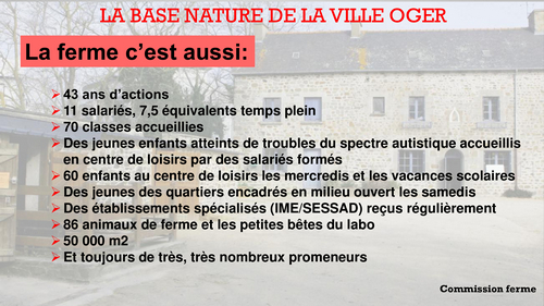 Poursuivons sur le même sujet, lors de la dernière AG du comité des quartiers en Mai 2025, le bilan annuel des activités de la Ferme avait été présenté. Un compte-rendu de cette AG est consultable sur ce site. ici