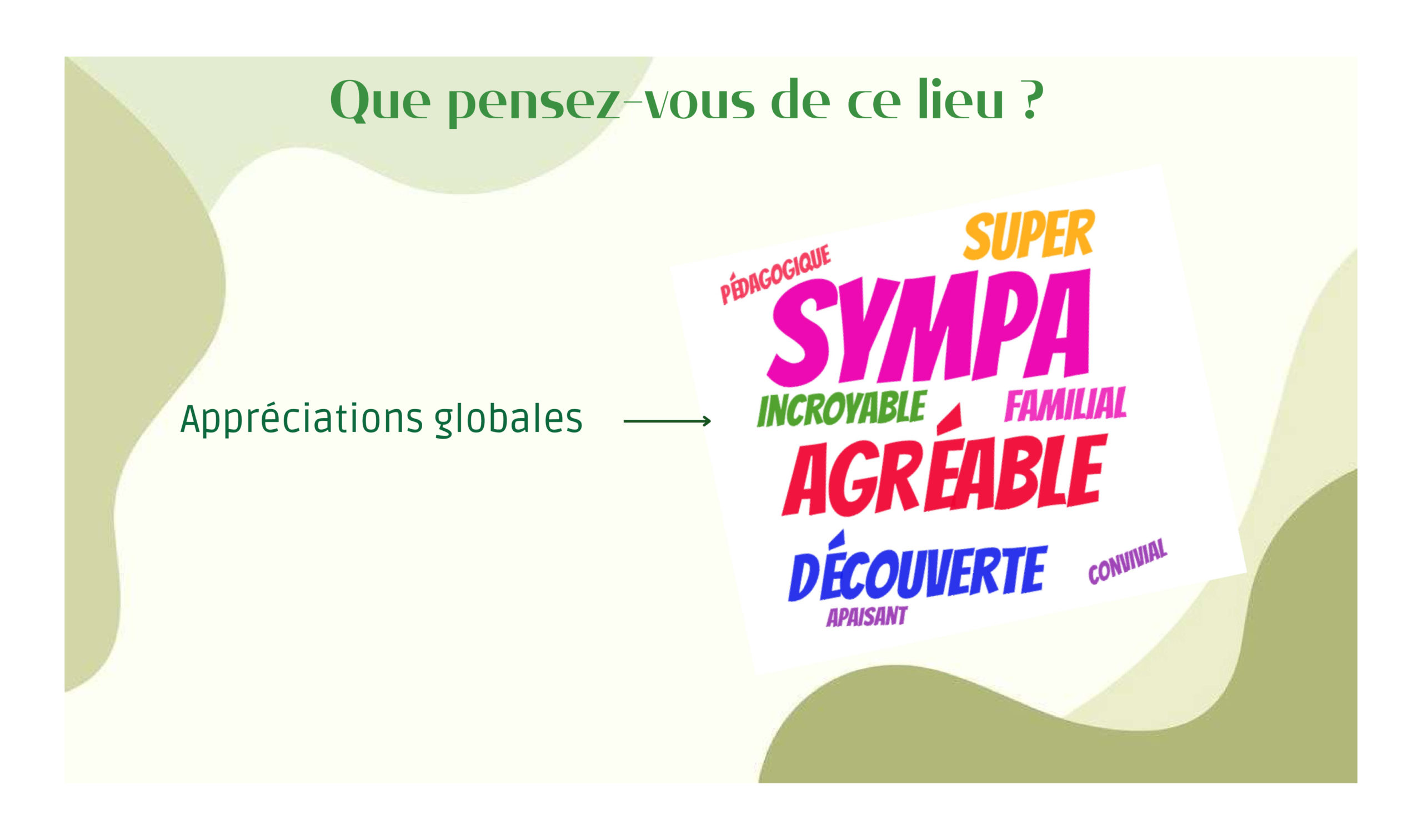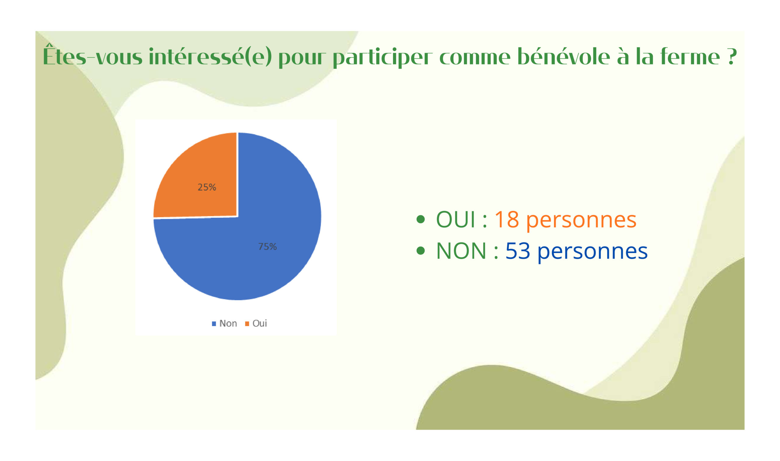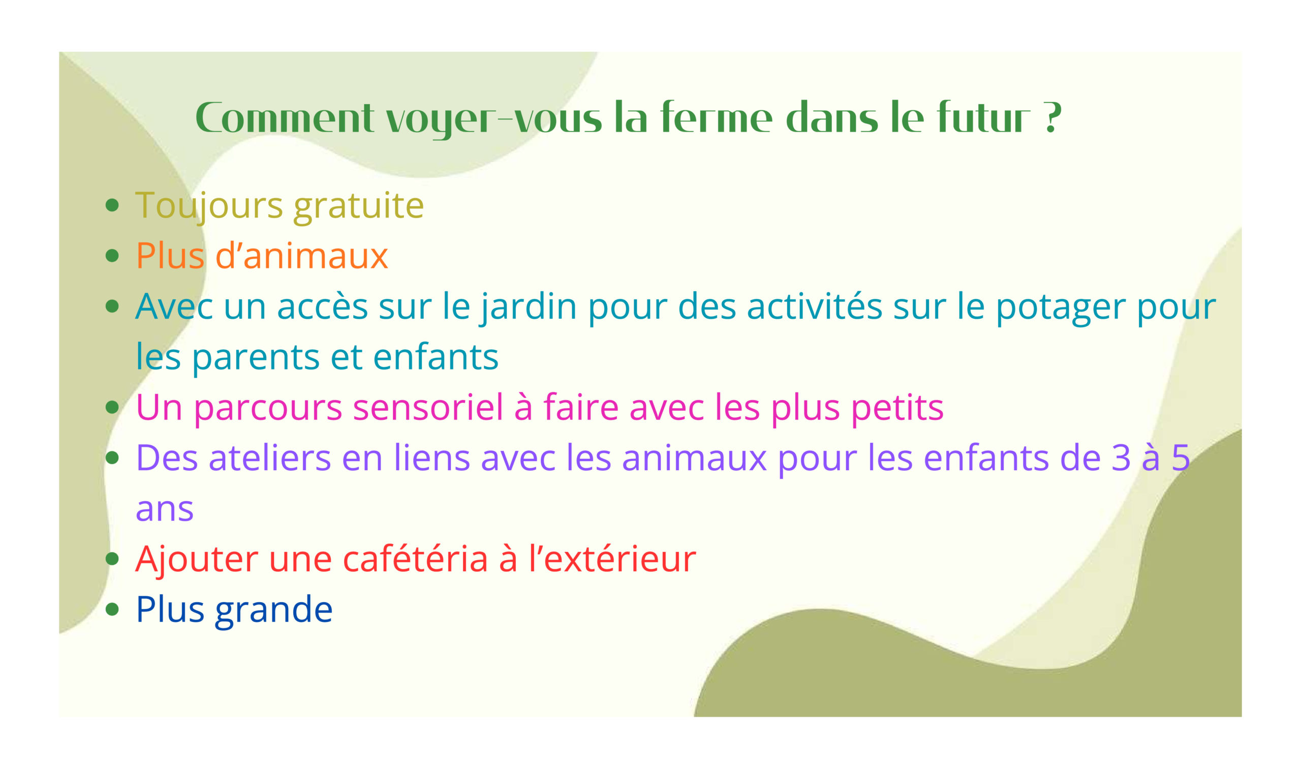 Pour clôturer l’évènement, Carla en service civique à la Ferme présentait son questionnaire réalisé le trimestre précédent par un sondage auprès des visiteurs à la Ferme. Sondage à consulter ci-dessous.